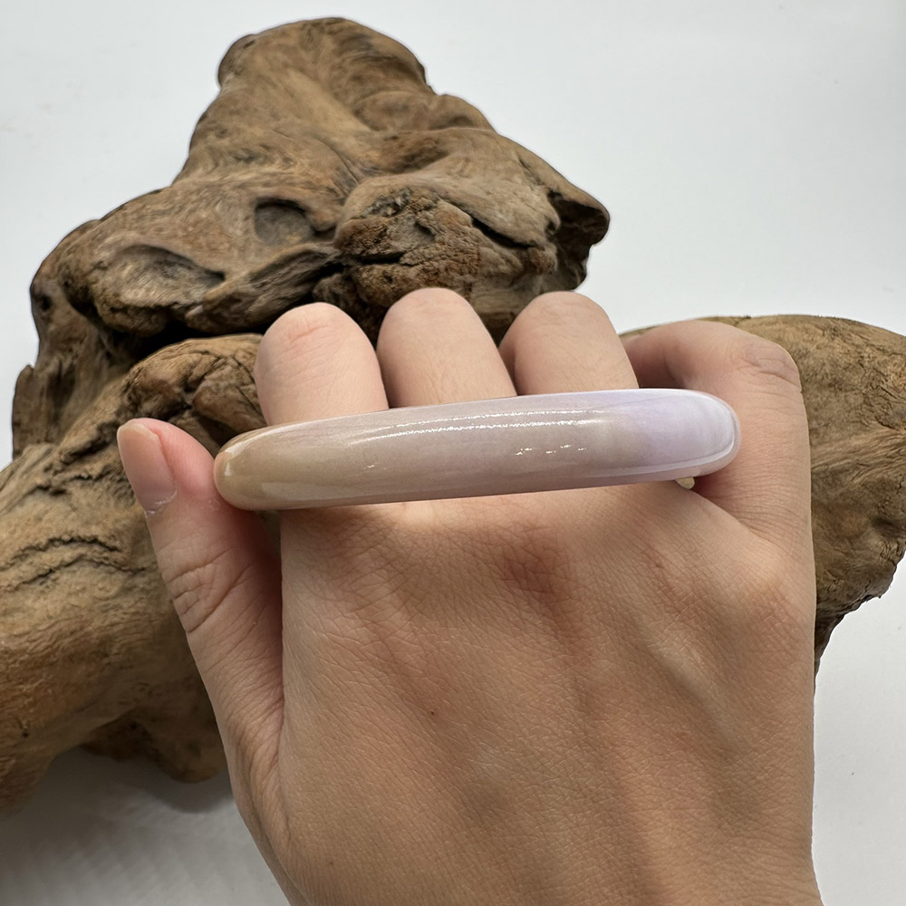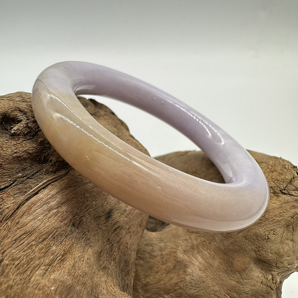 【肌容雪】天然緬甸A貨粉底黃翡翠圓條手鐲 編號431(鐲圍54.7mm#17號)
