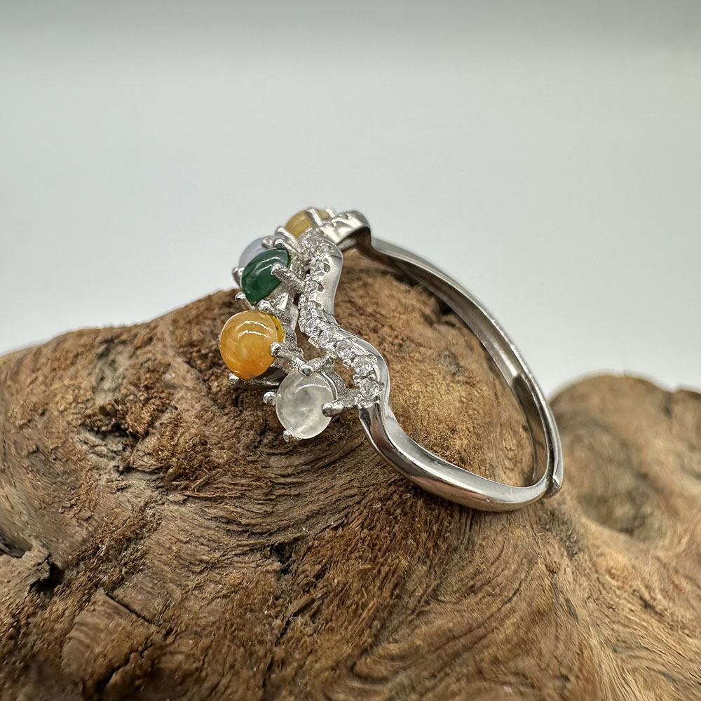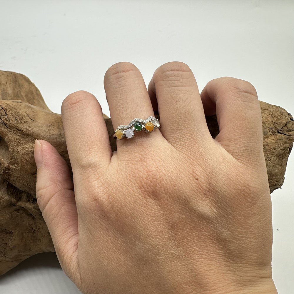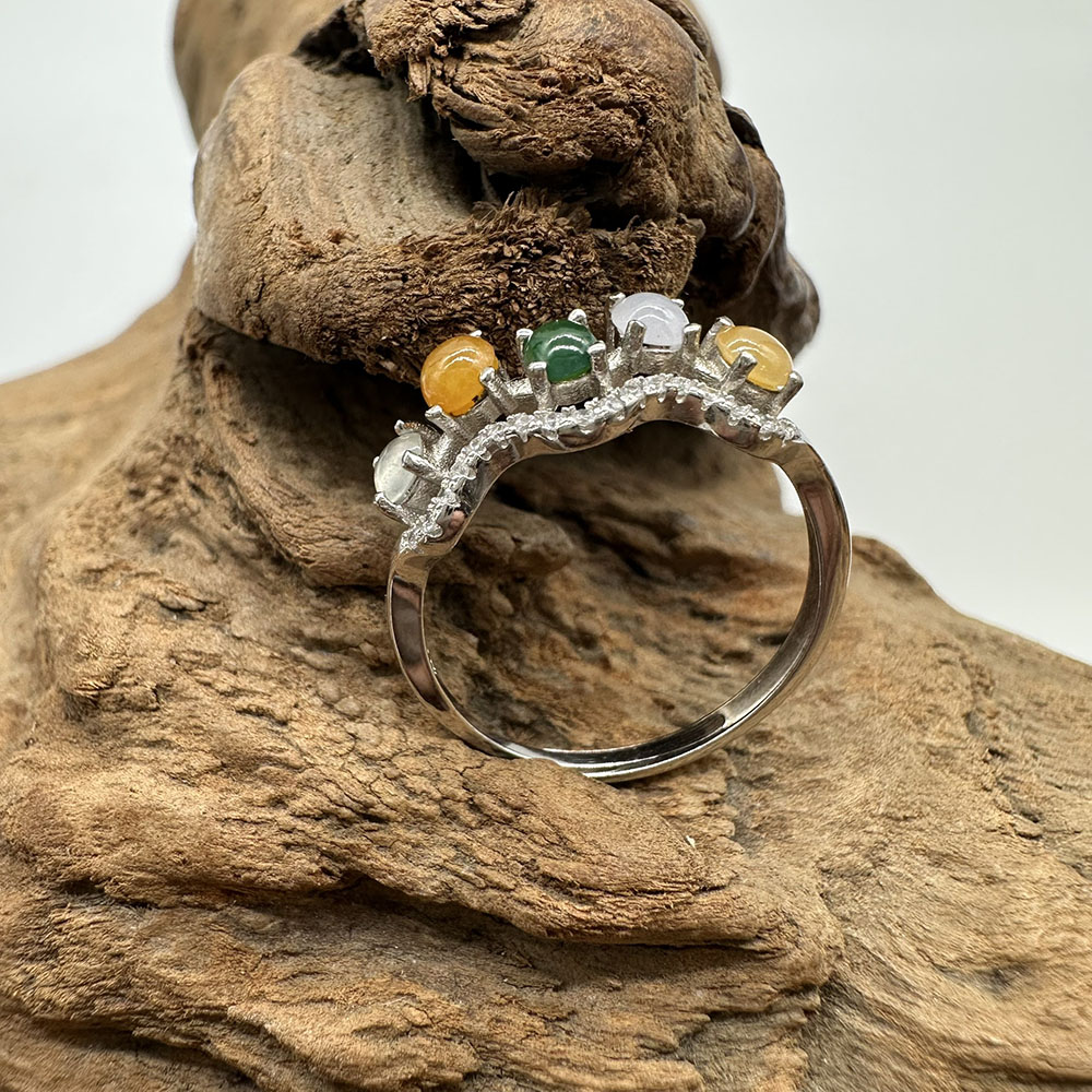 【肌容雪】天然緬甸A貨多彩翡翠鑲崁可調節戒指 編號508(戒圍19.0mm#15號)