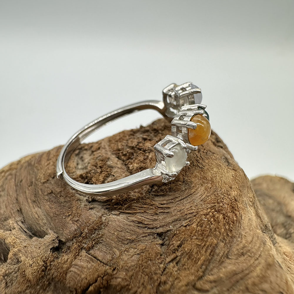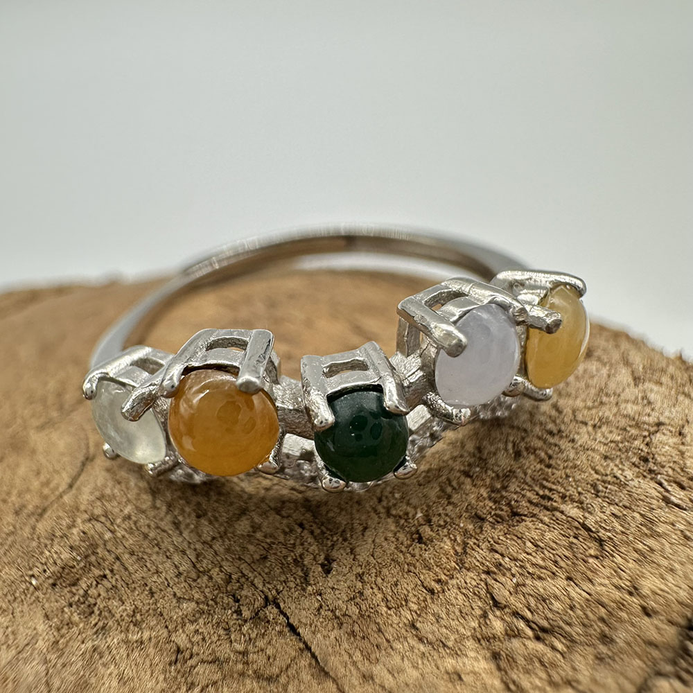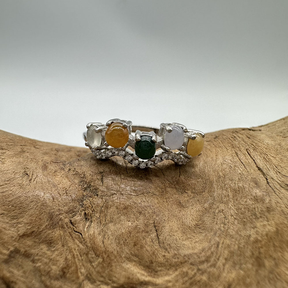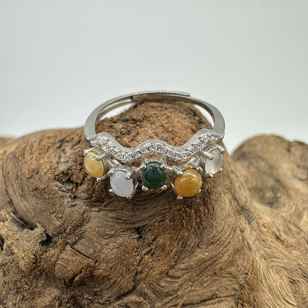 【肌容雪】天然緬甸A貨多彩翡翠鑲崁可調節戒指 編號508(戒圍19.0mm#15號)