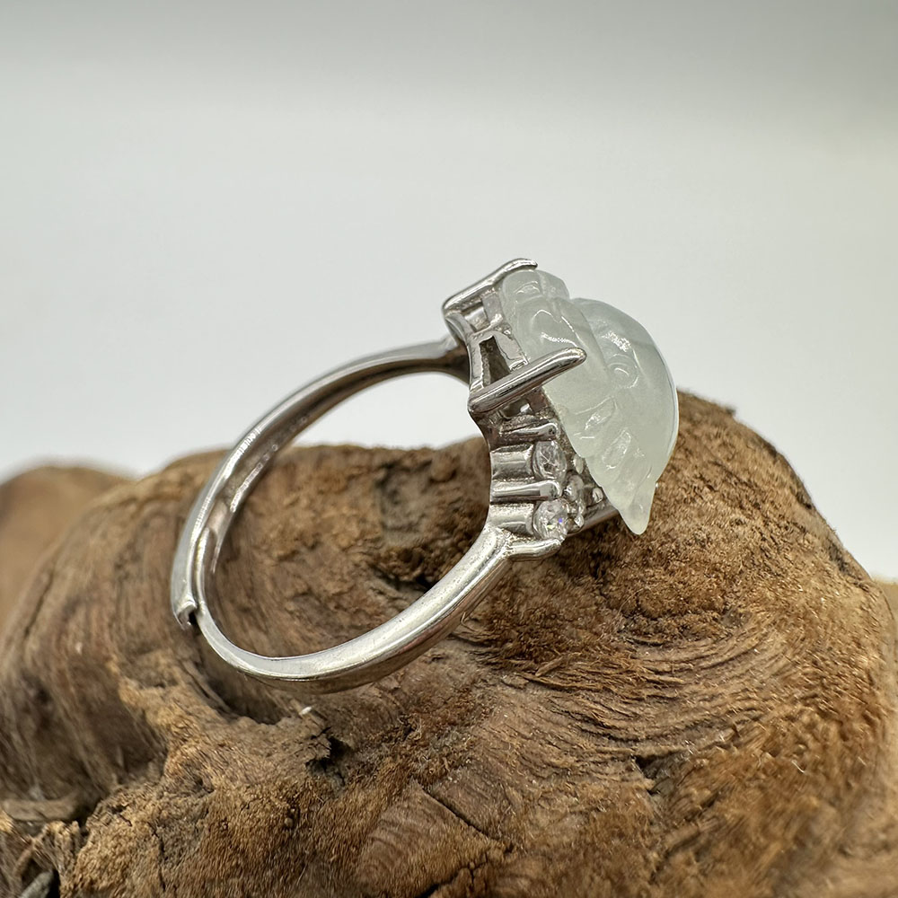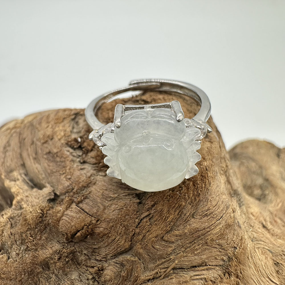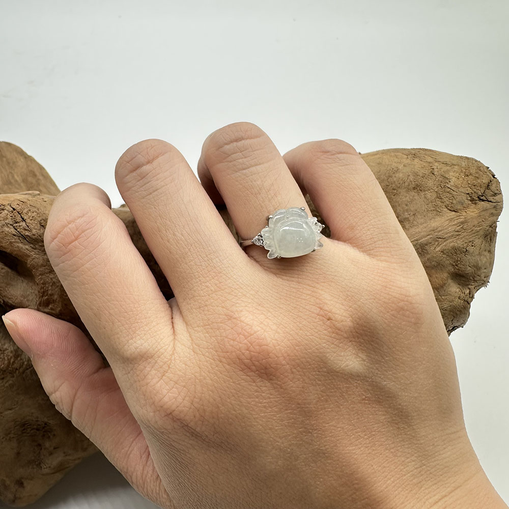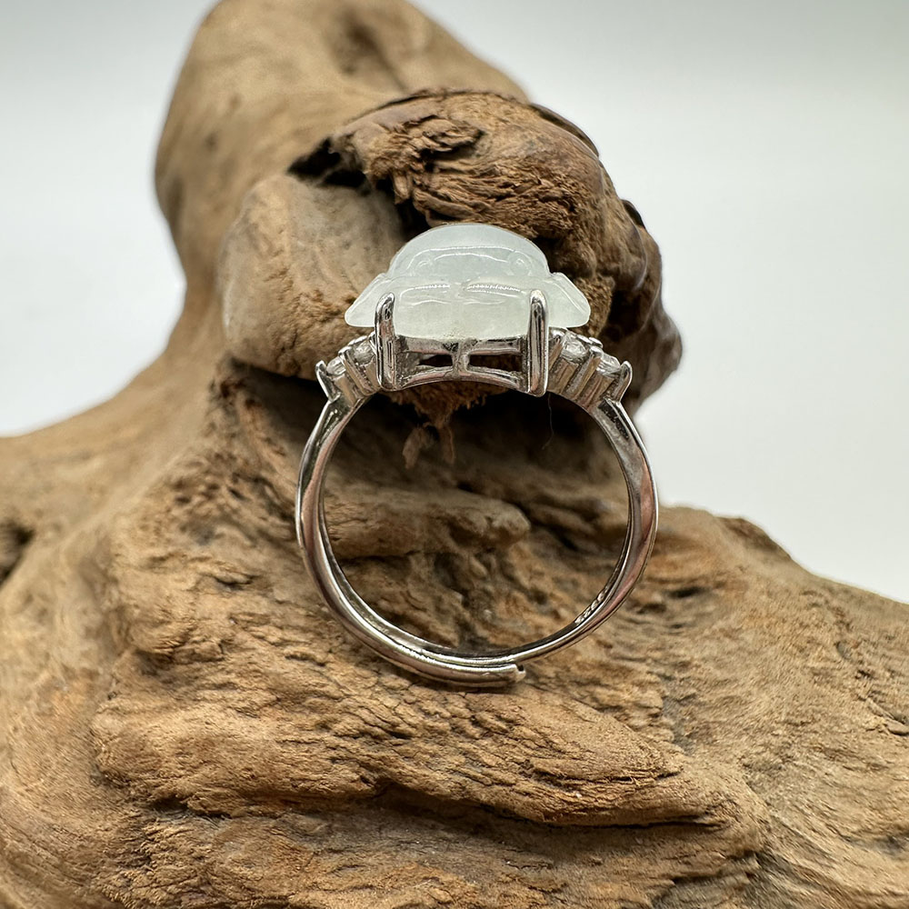 【肌容雪】天然緬甸A貨白冰翡翠螃蟹造型可調節戒指 編號516(戒圍18.0mm#14號)