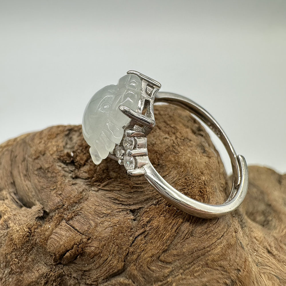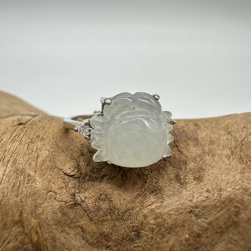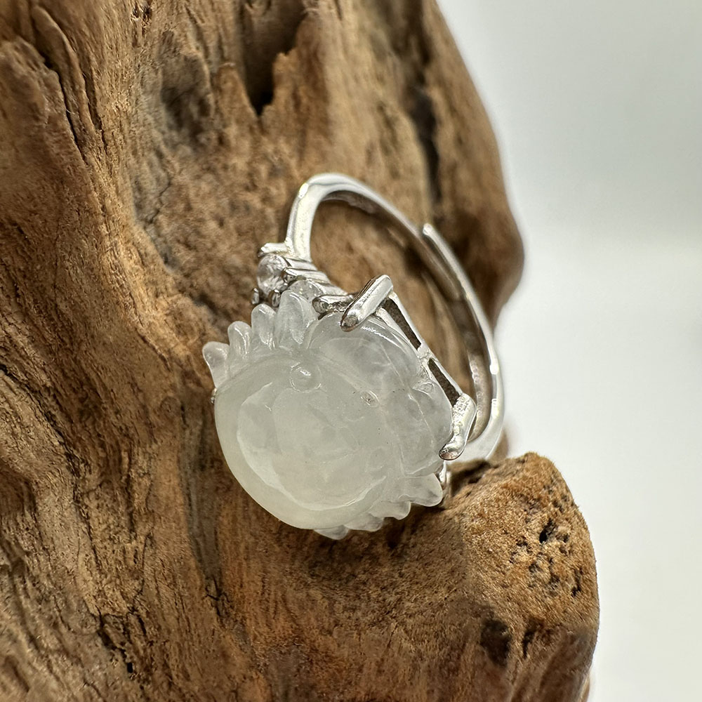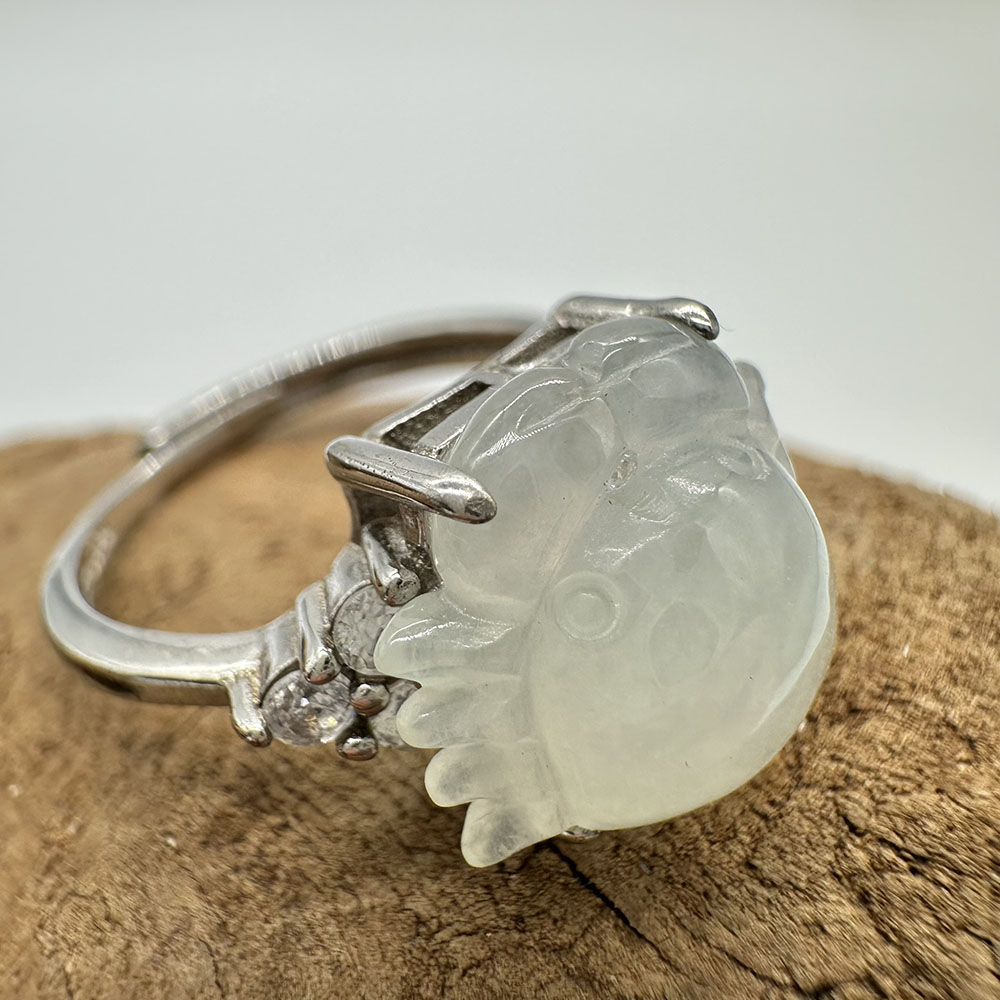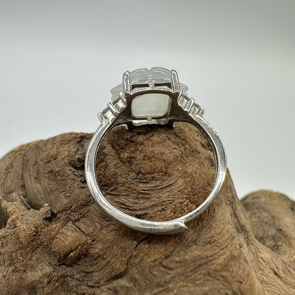 【肌容雪】天然緬甸A貨白冰翡翠螃蟹造型可調節戒指 編號516(戒圍18.0mm#14號)