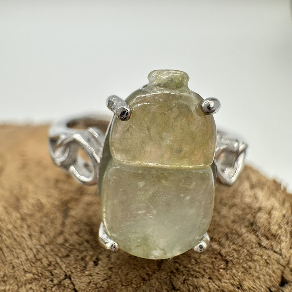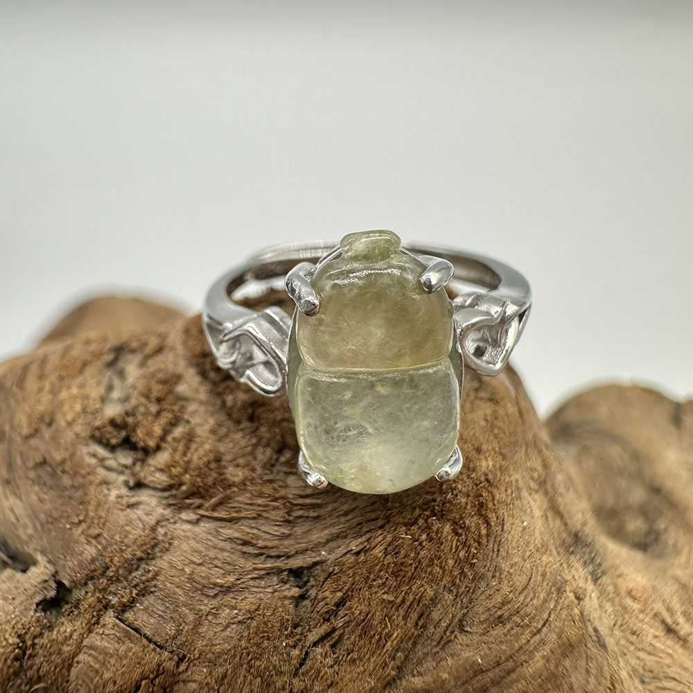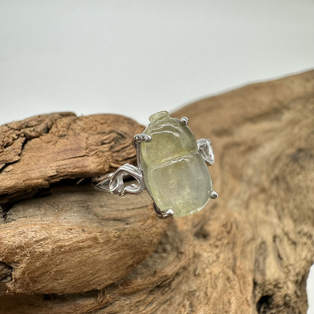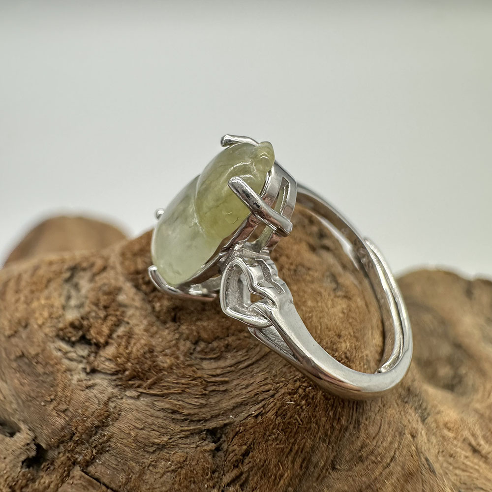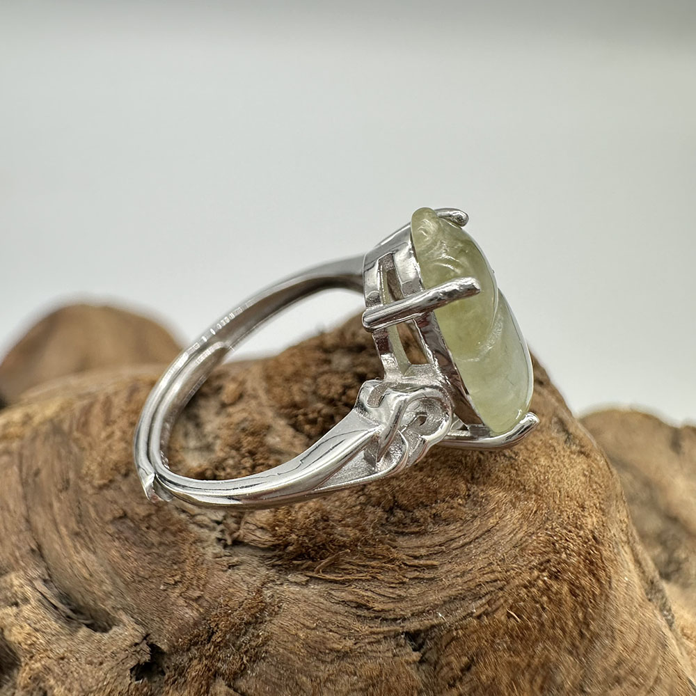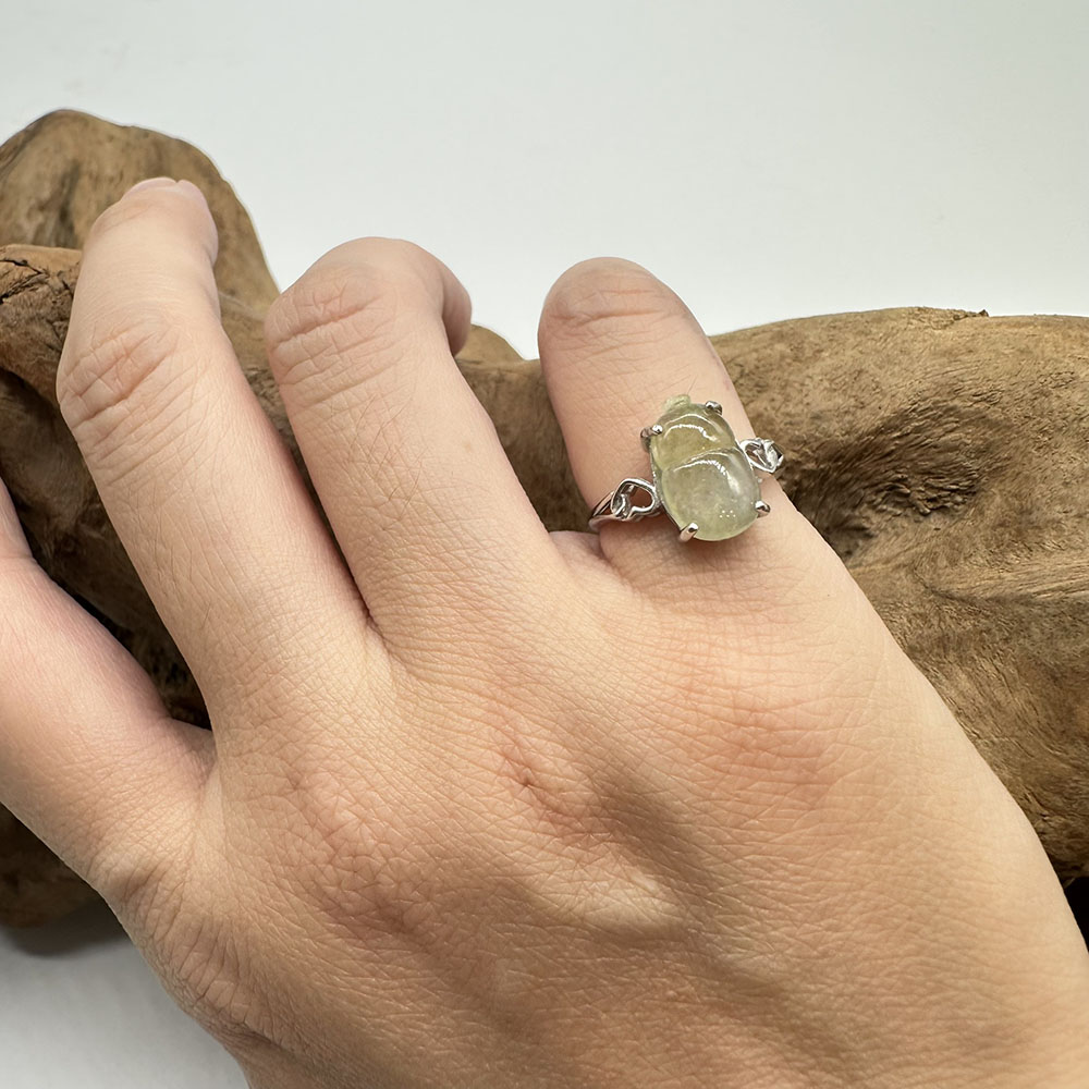 【肌容雪】天然緬甸A貨冰糖雪梨翡翠胡蘆鑲崁可調節戒指 編號648(戒圍16.1mm#10號)
