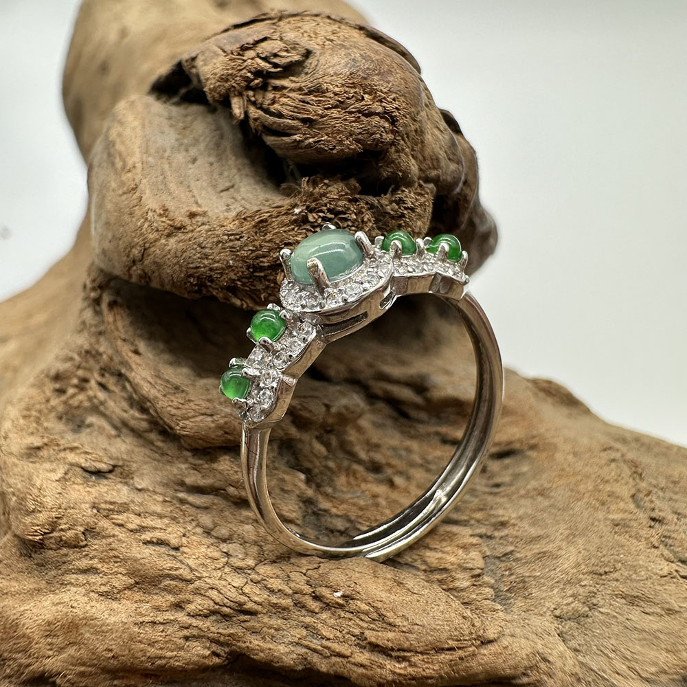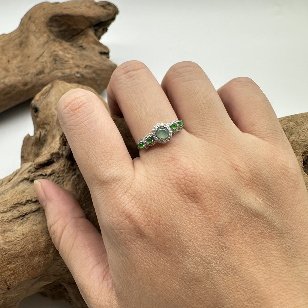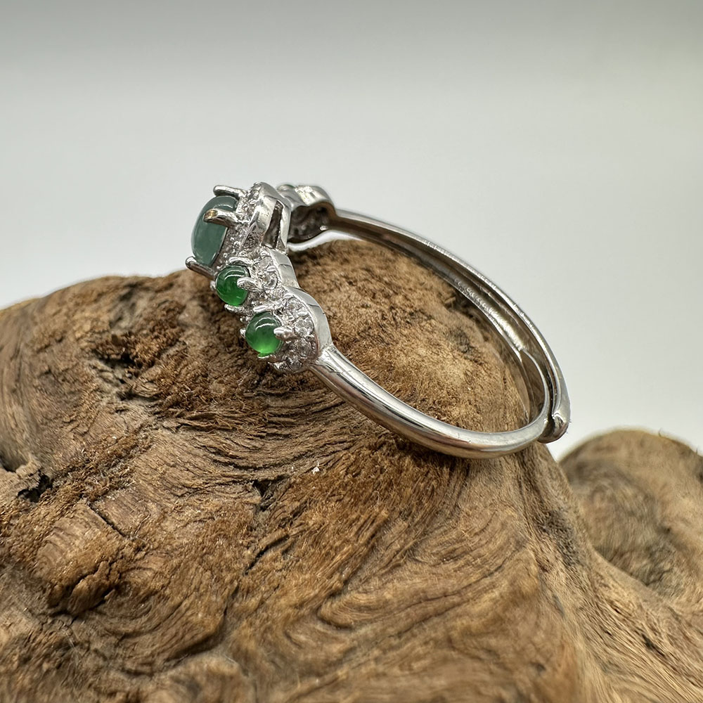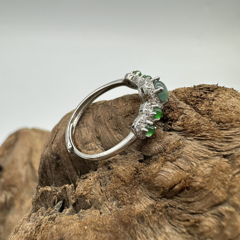 【肌容雪】天然緬甸A貨綠翡翠蛋面可調節戒指 編號509(戒圍18.5mm#15號)