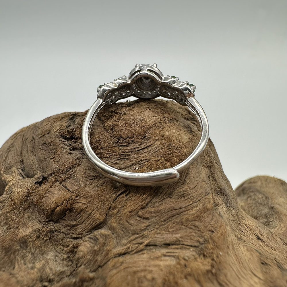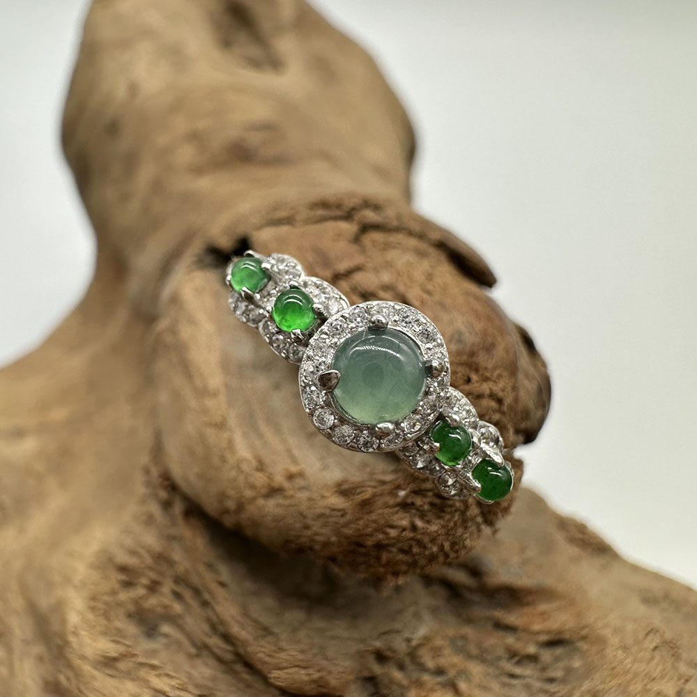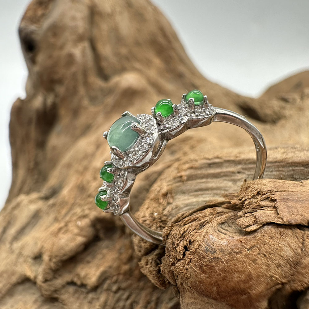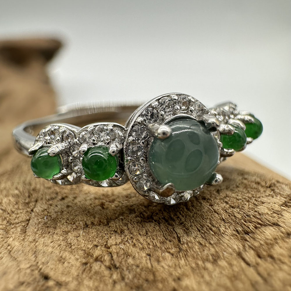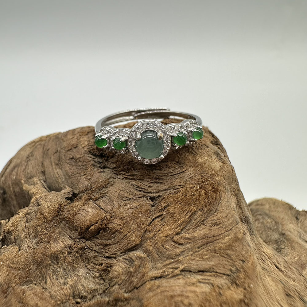 【肌容雪】天然緬甸A貨綠翡翠蛋面可調節戒指 編號509(戒圍18.5mm#15號)