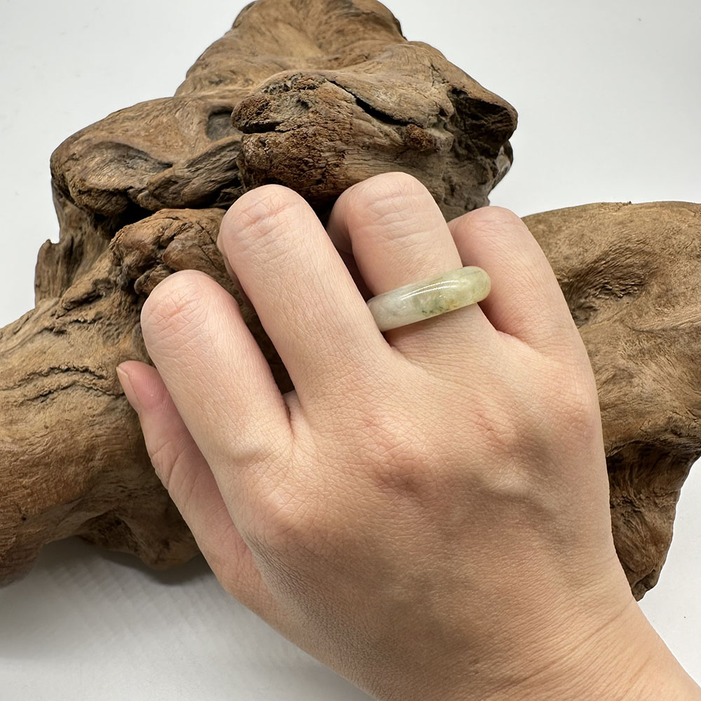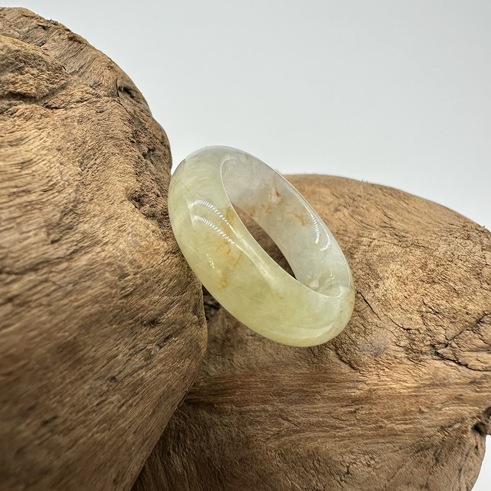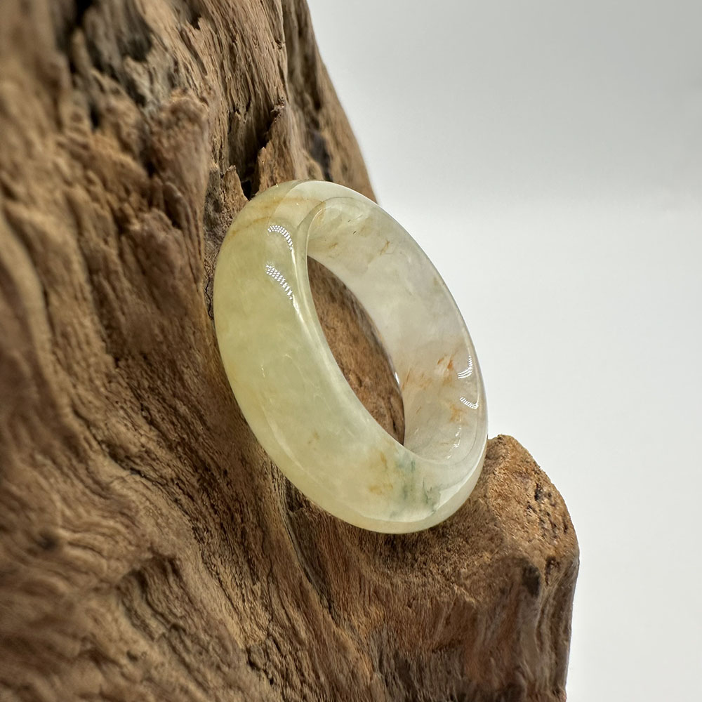 【肌容雪】天然緬甸A貨黃綠翡翠戒圈 編號1029(戒圍16.9mm#10號)