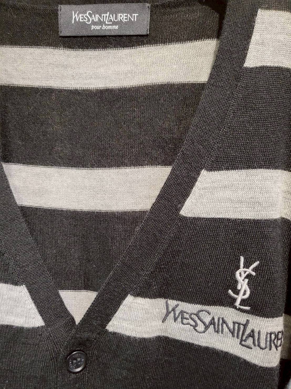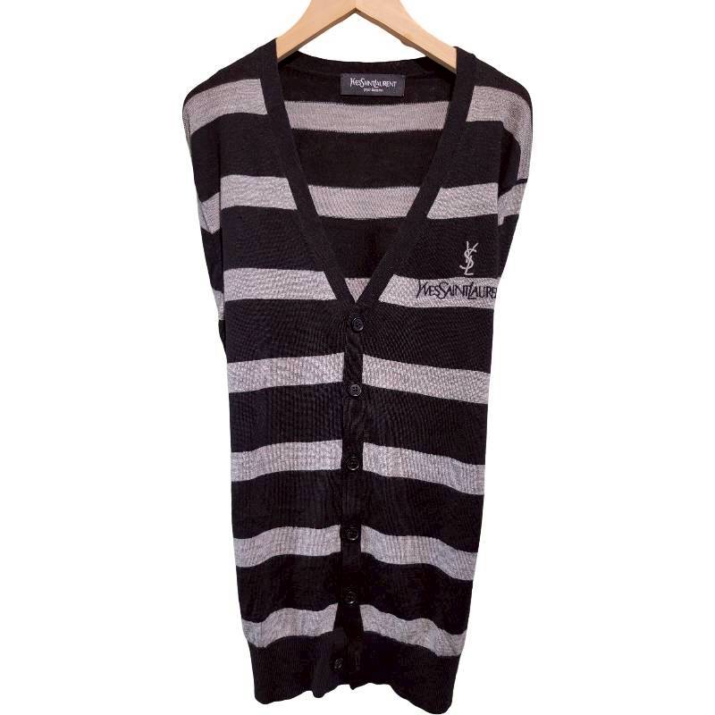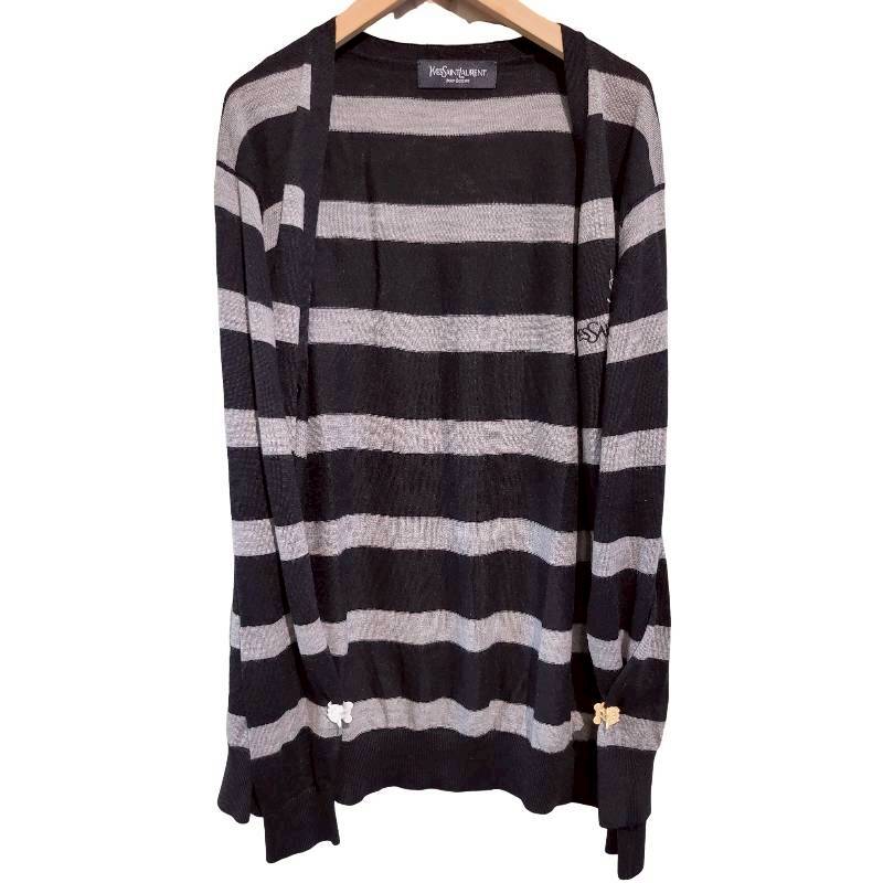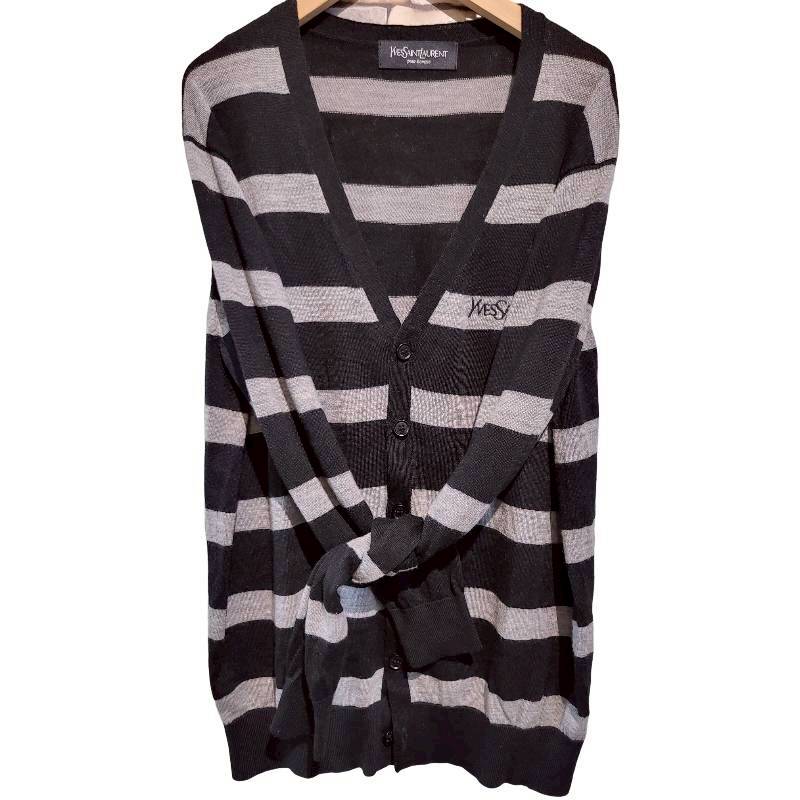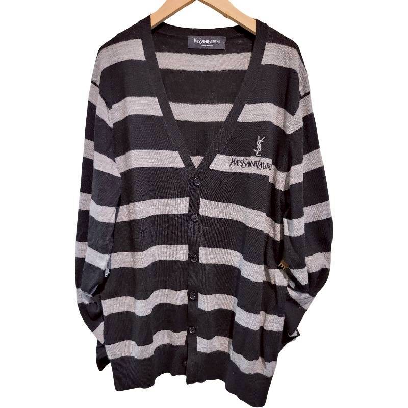 二手奢侈品聖羅蘭YSL灰條紋針織開襟衫 (9.9新, 肩50胸52長68)-編號S57