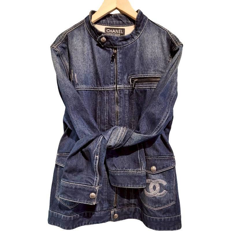 二手奢侈品香奈兒CHANEL牛仔夾克  (9.9新, 肩45胸50長67)-編號S61