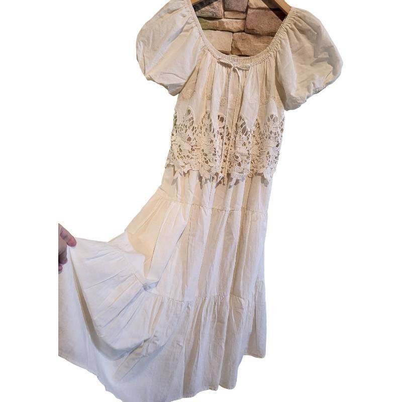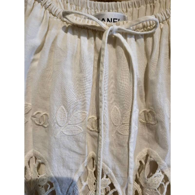 二手奢侈品香奈兒CHANEL刺繡與鏤空花邊細節白色棉質洋裝(9.9新, 肩36胸40長102)-編號S69