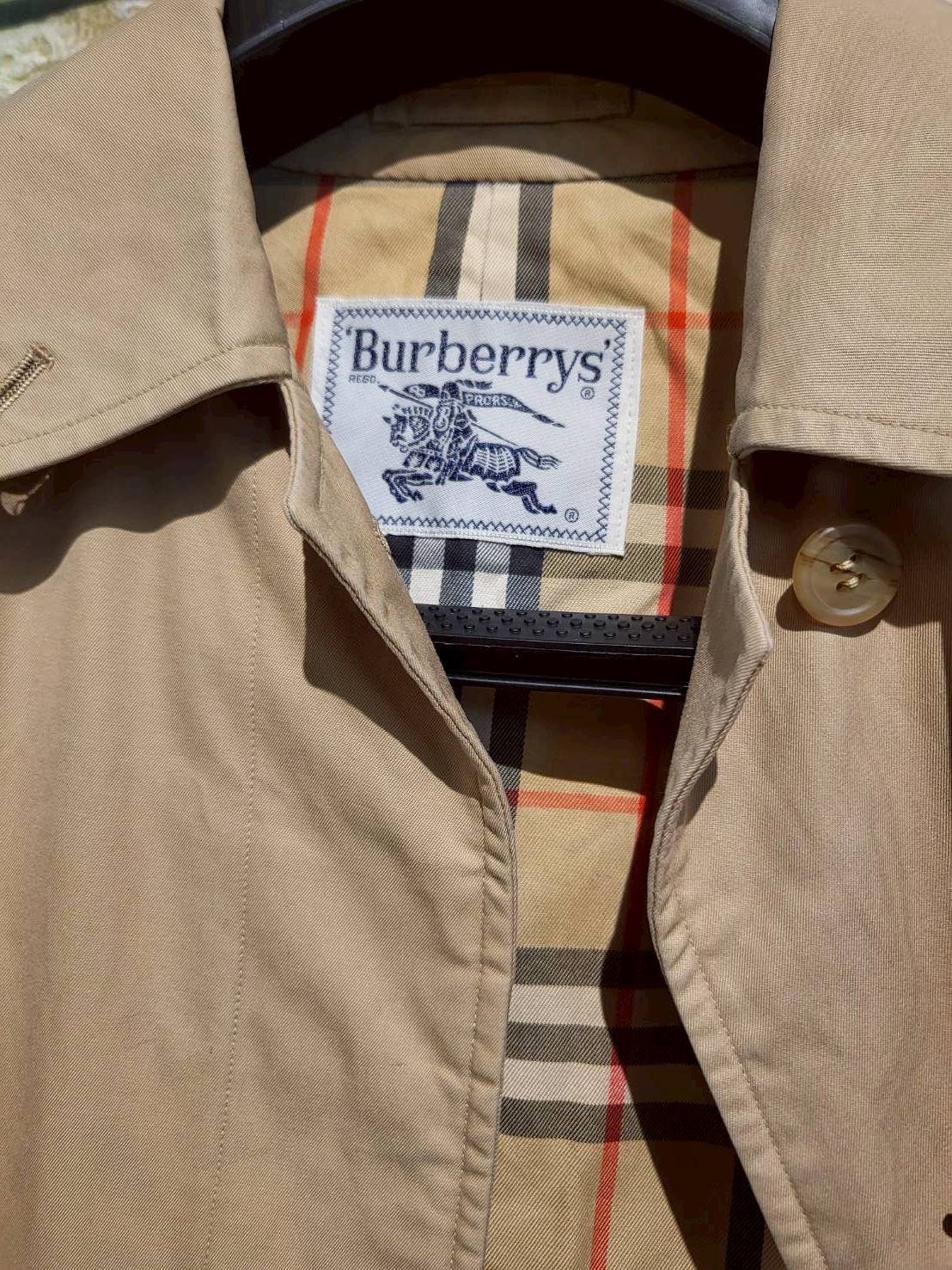 二手奢侈品Burberry巴寶麗內裡戰馬格風衣外套(9.9新, 肩40胸48長100)-編號S114