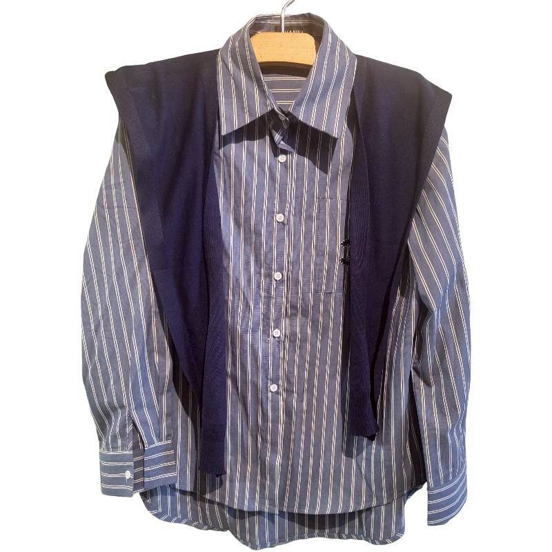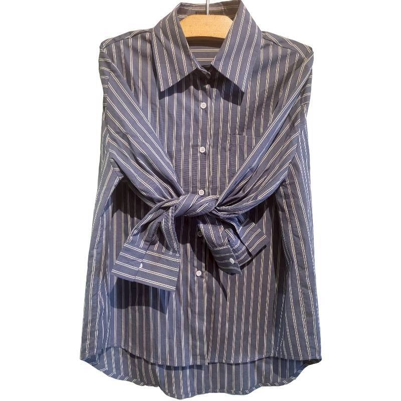 二手奢侈品Chanel香奈兒藍白條紋襯衫 (9.9新, 肩48胸56長80)-編號S127