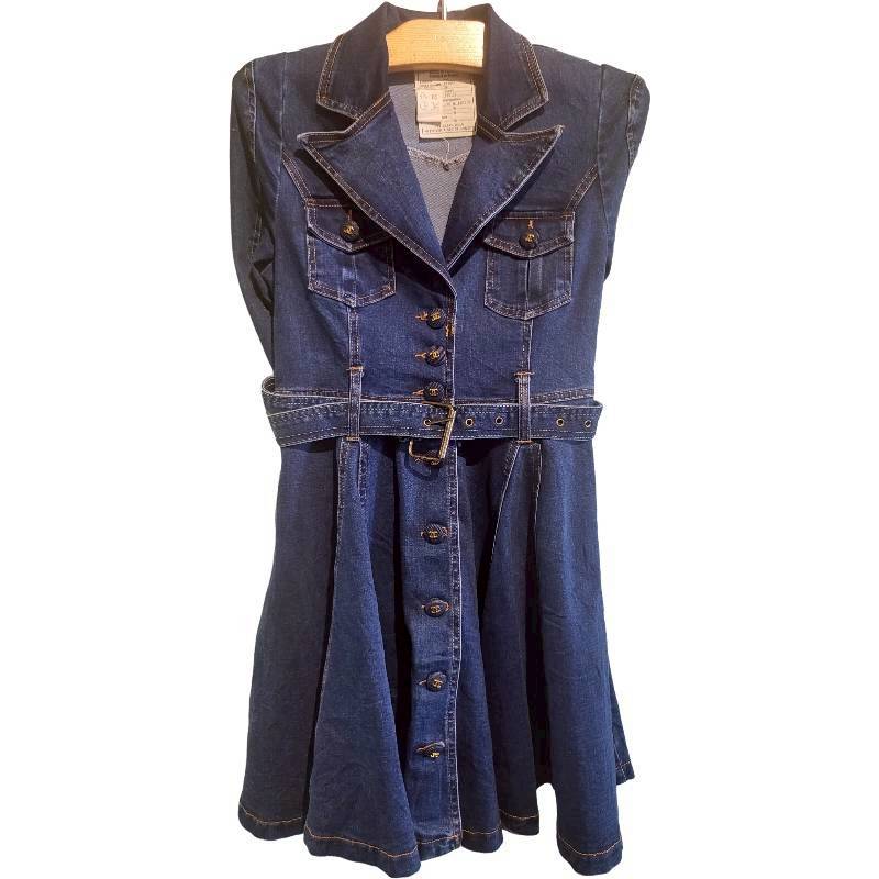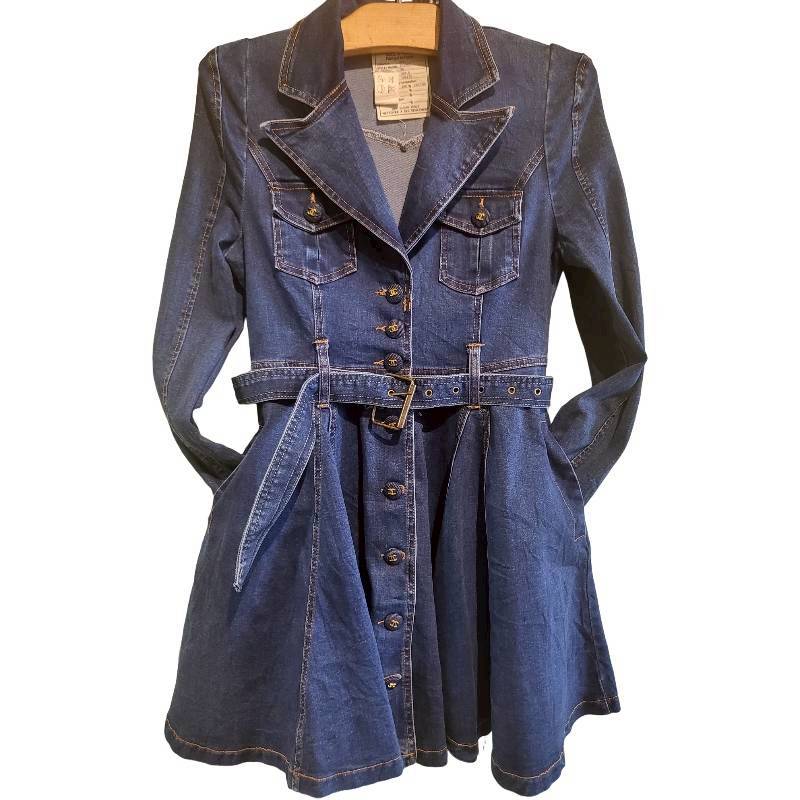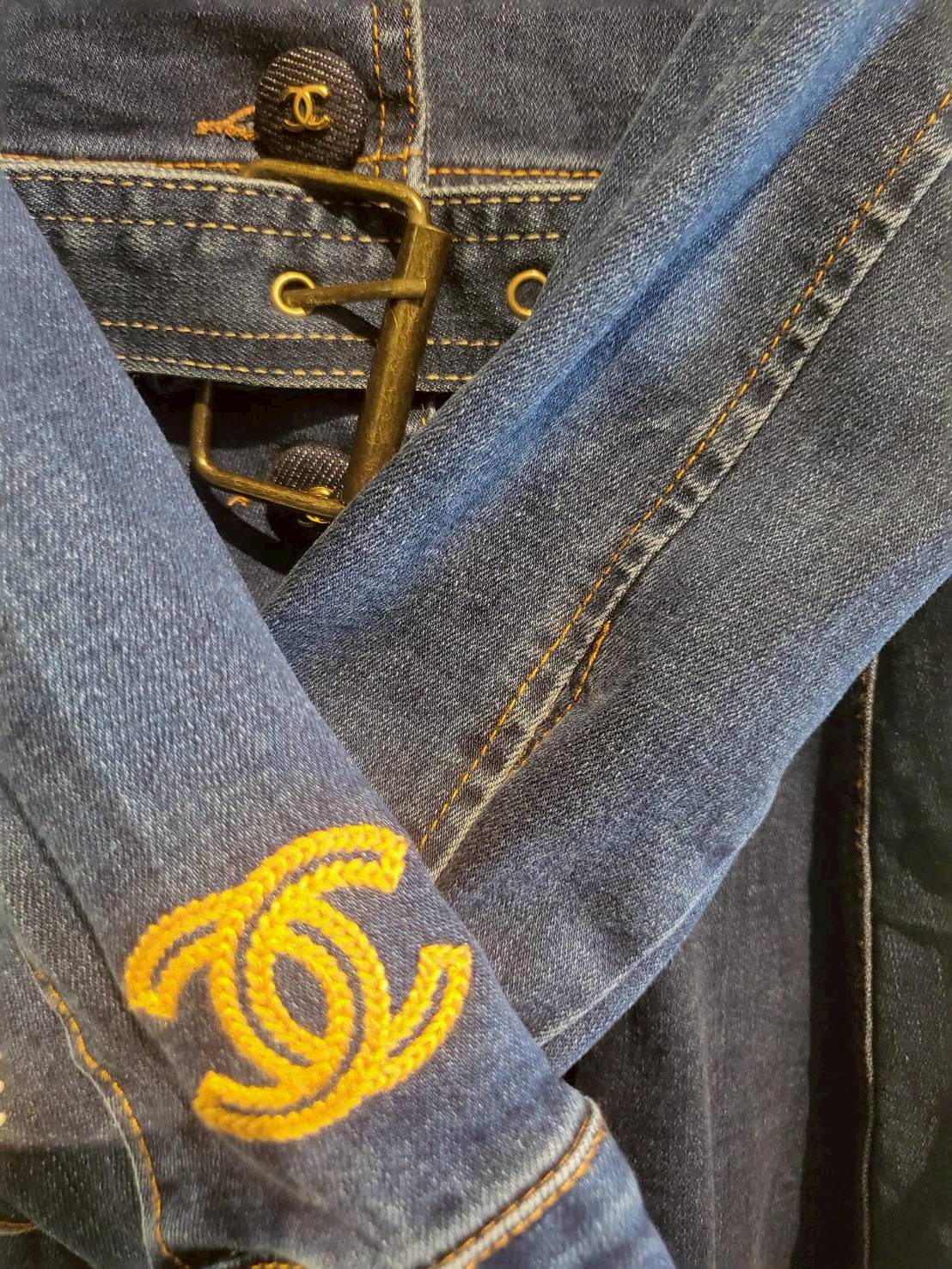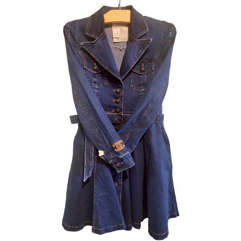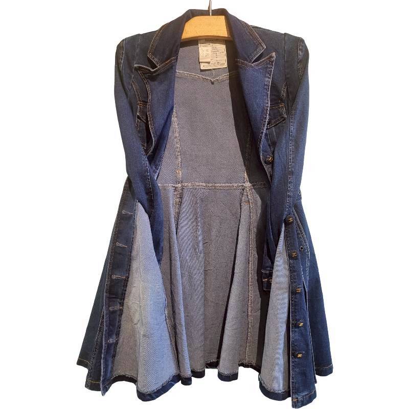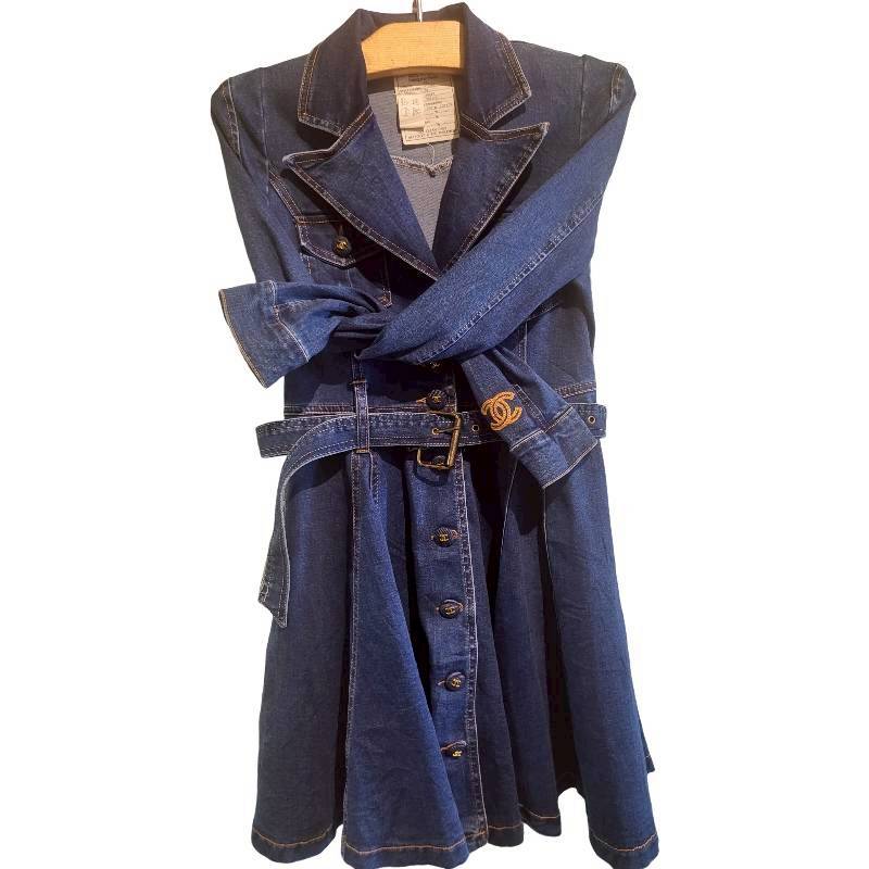 二手奢侈品Chanel香奈兒牛仔風衣襯衫洋裝(9.9新, 肩32胸42長85)-編號S129