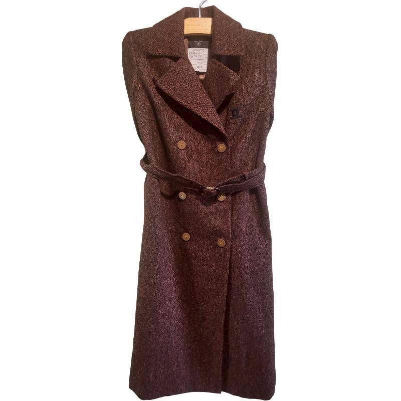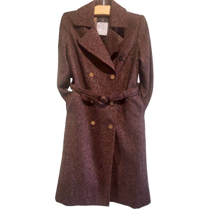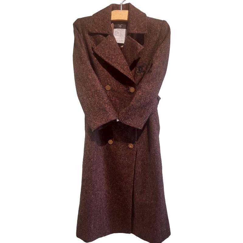 二手奢侈品Chanel香奈兒復古粗花呢綁帶長大衣(9.9新, 肩38胸46長113)-編號S131