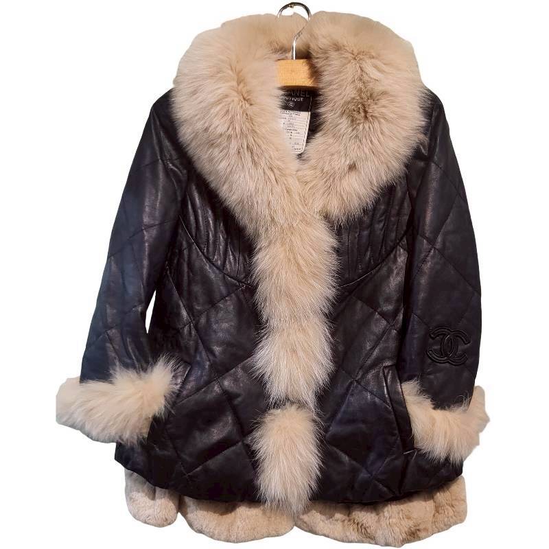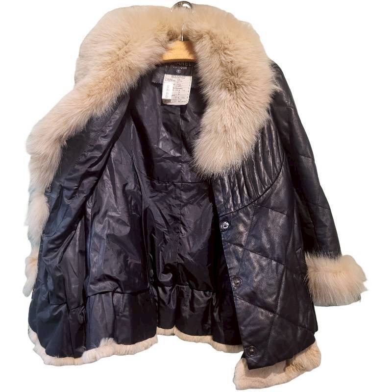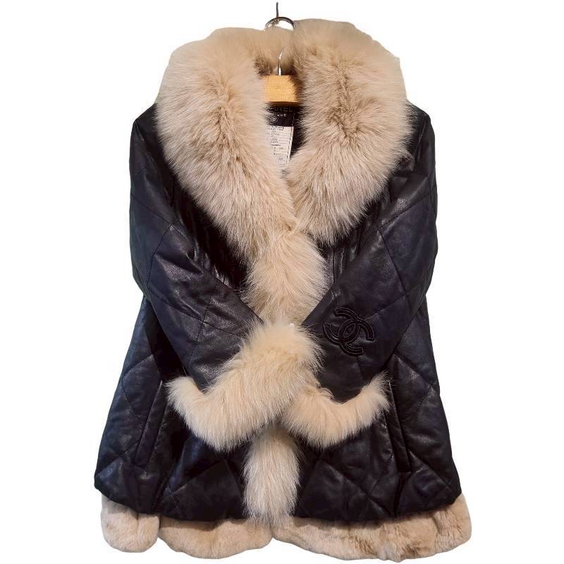 二手奢侈品Chanel香奈兒黑色菱格紋絎縫皮革外套 (9.9新, 肩36胸42長68)-編號S141