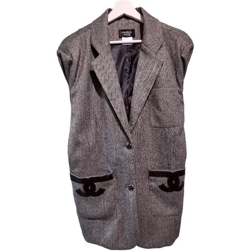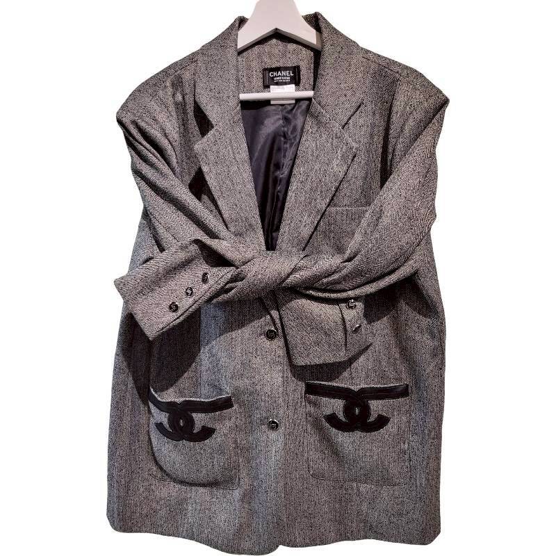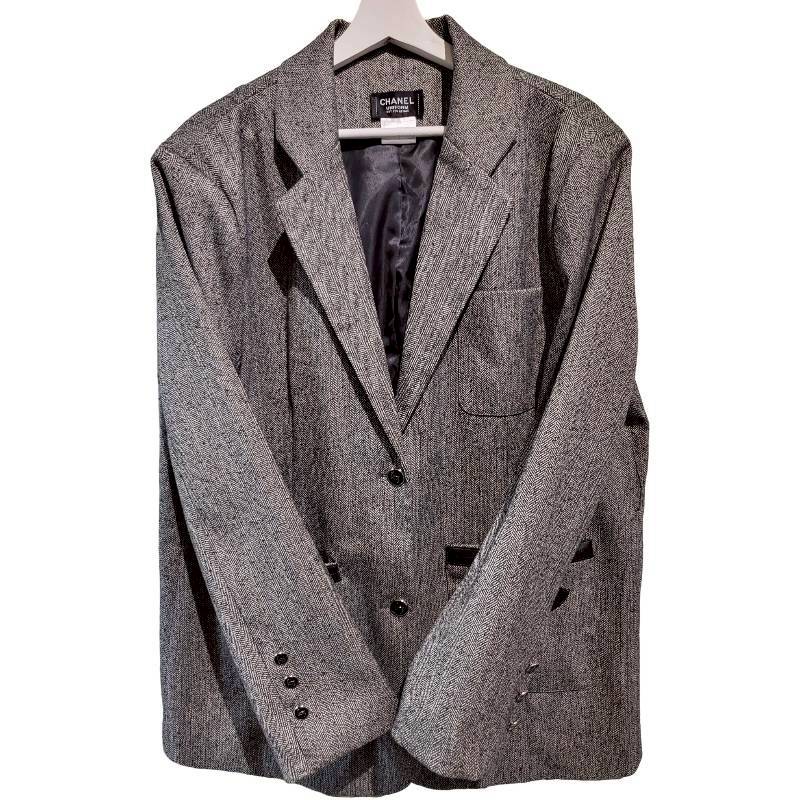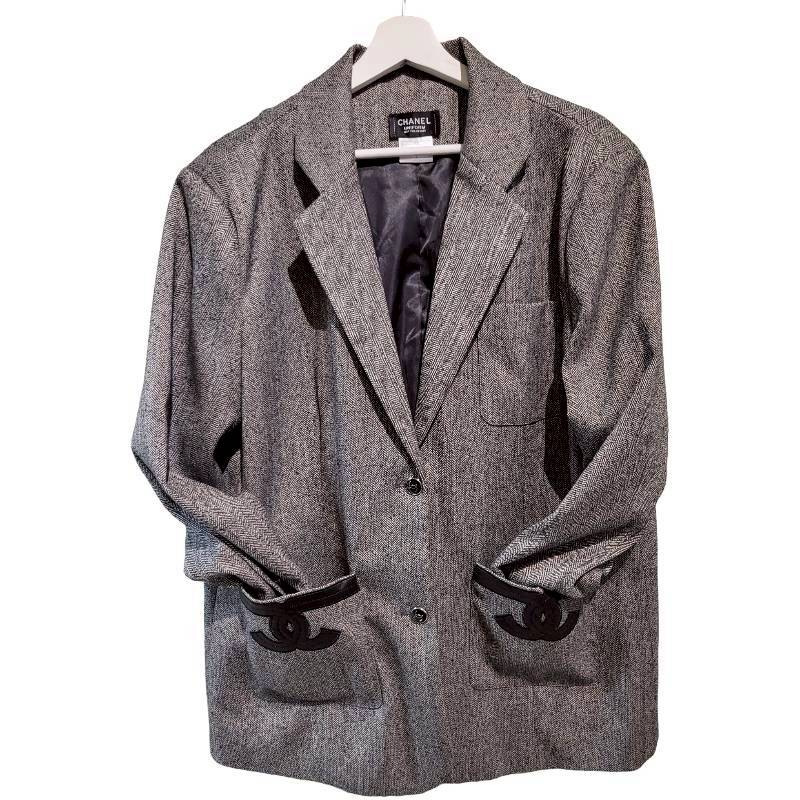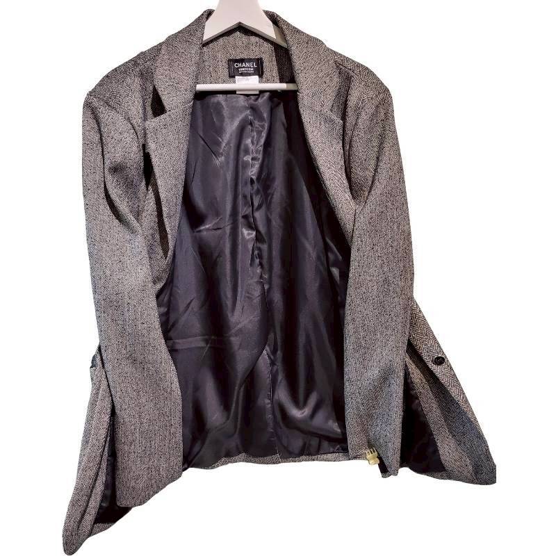 二手奢侈品Chanel香奈兒Uniform 系列深灰色人字紋西裝外套 (9.9新, 肩42胸58長83)-編號S150