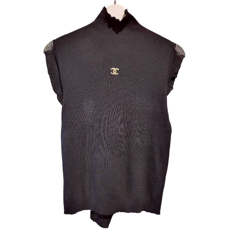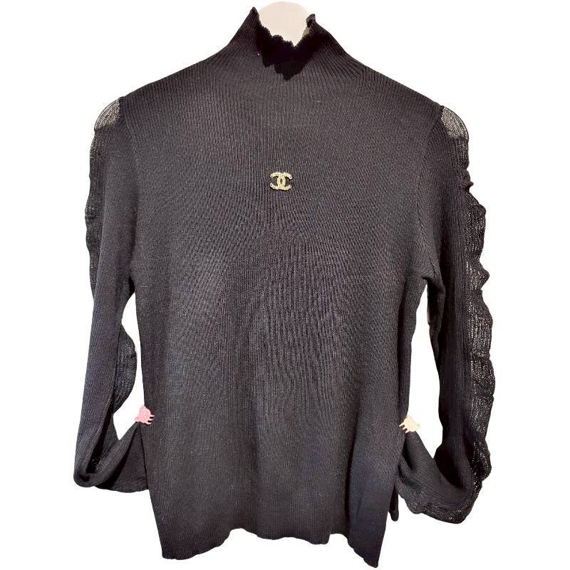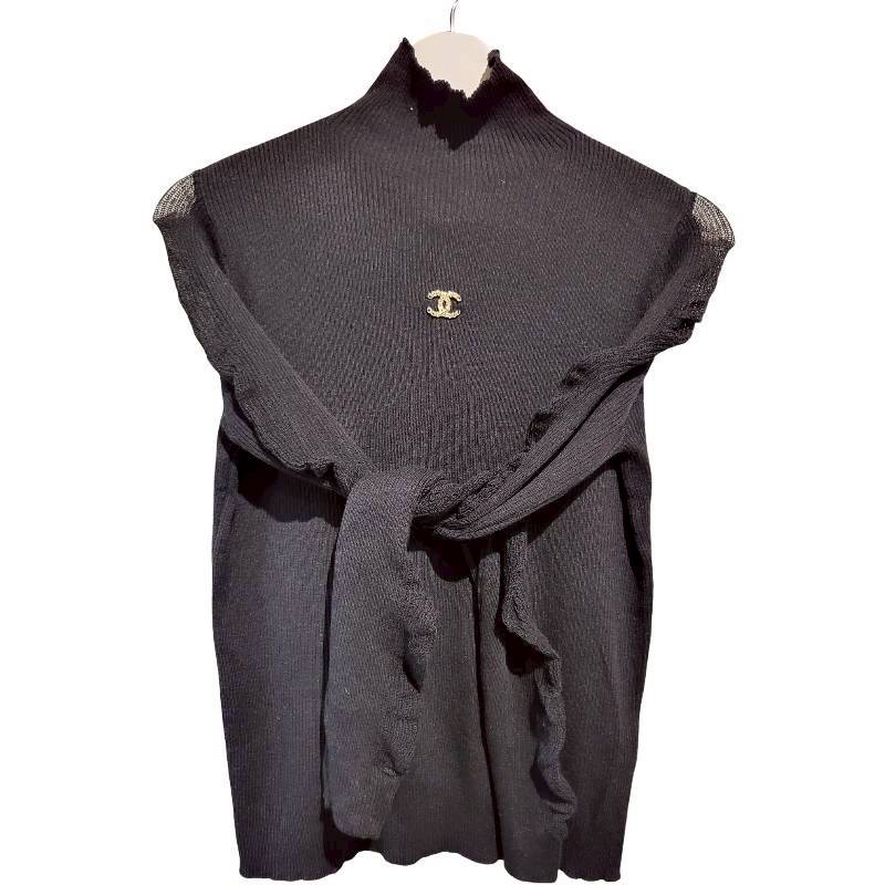 二手奢侈品Chanel香奈兒黑色女裝針織套頭衫 (9.9新, 肩38×胸42×長62)-編號S152