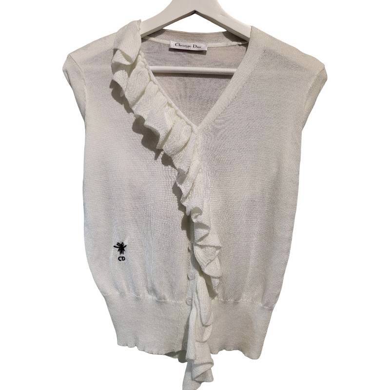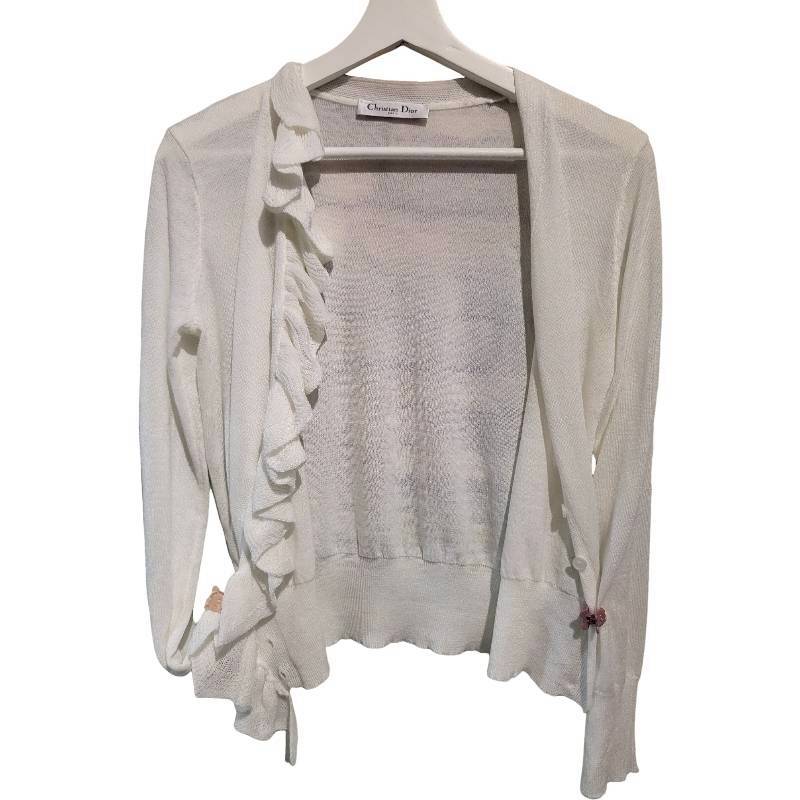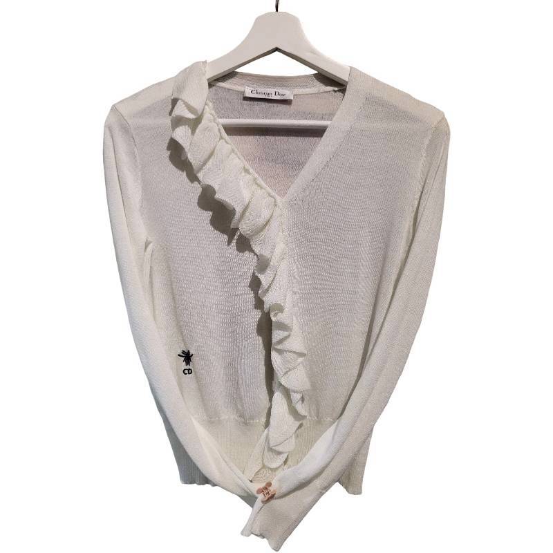 二手奢侈品迪奧 Christian Dior白色針織開襟衫(9.9新, 肩40×胸48×長53)-編號S157