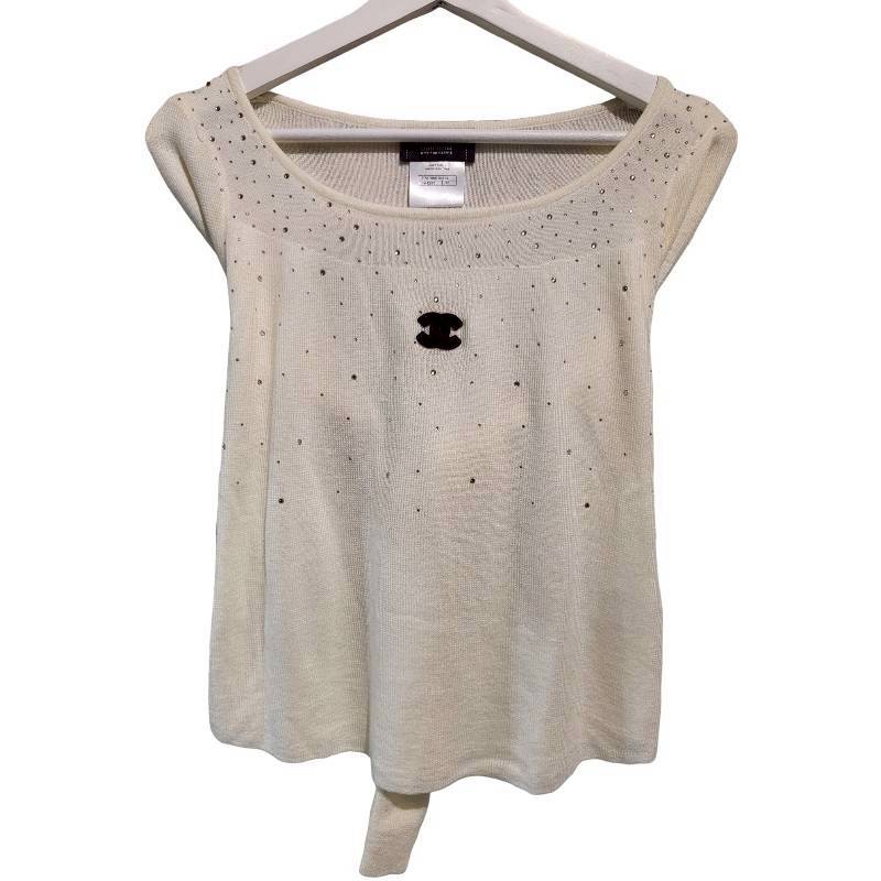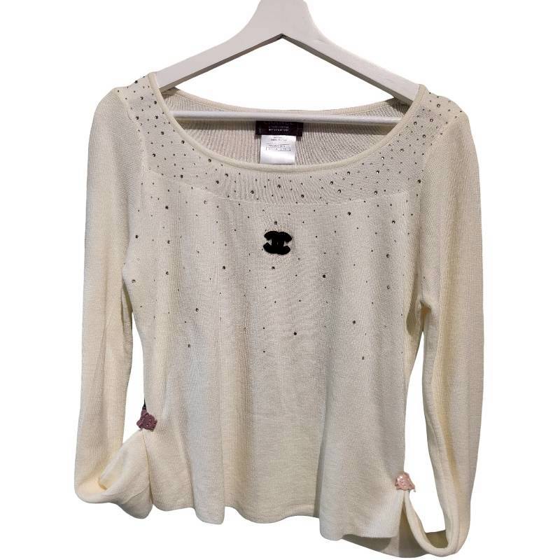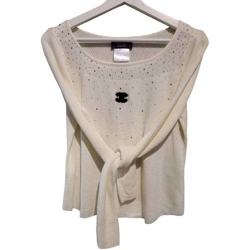 二手奢侈品Chanel香奈兒燙鑽針織衫 (9.9新, 肩40×胸48×長50)-編號S158