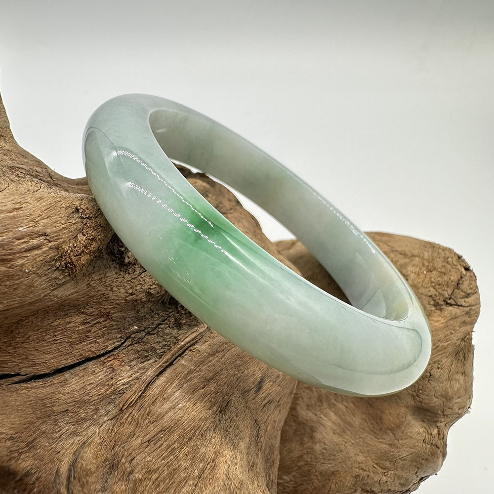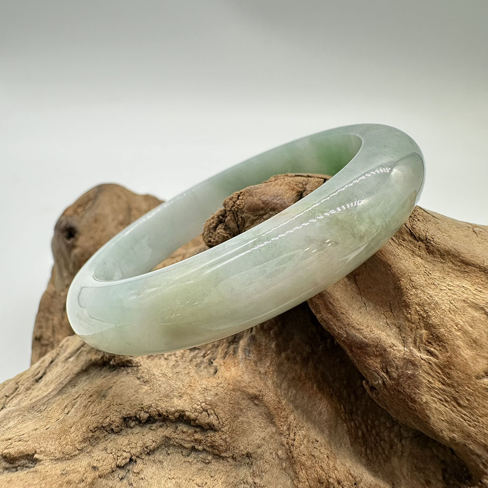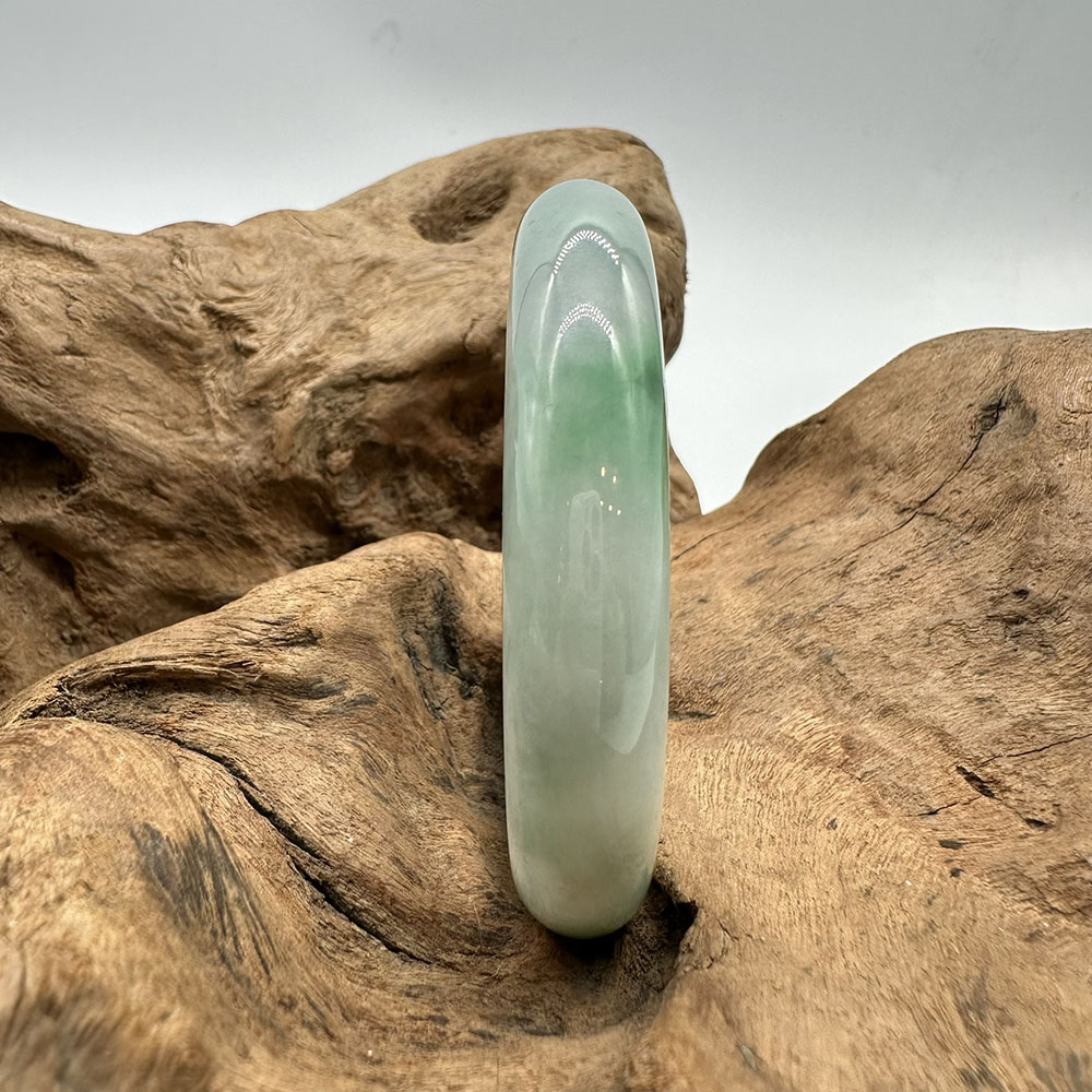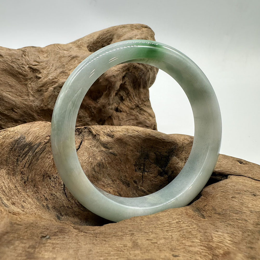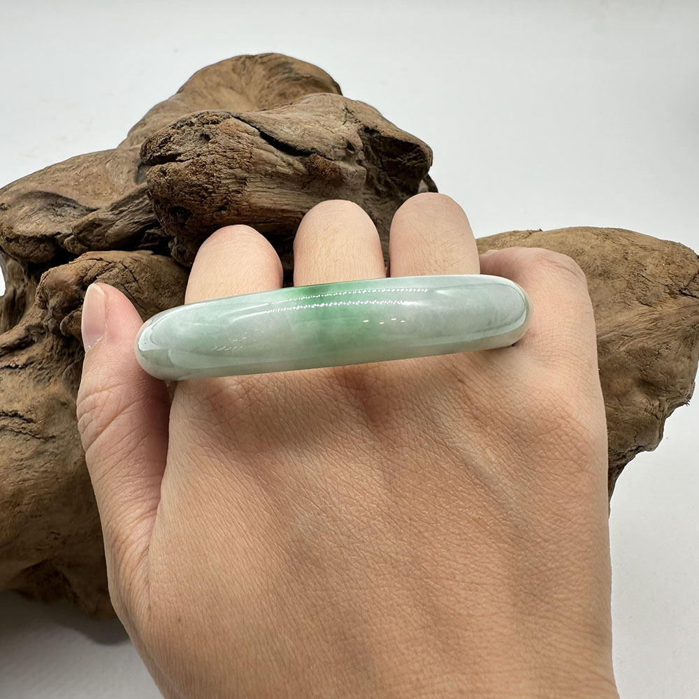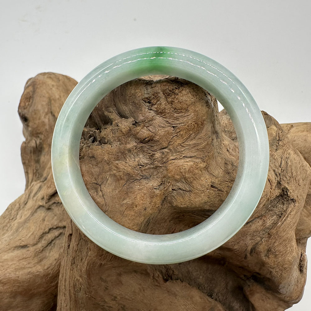 【肌容雪】天然緬甸A貨白底青翡翠平安鐲 編號192(鐲圍57.5mm#18號)