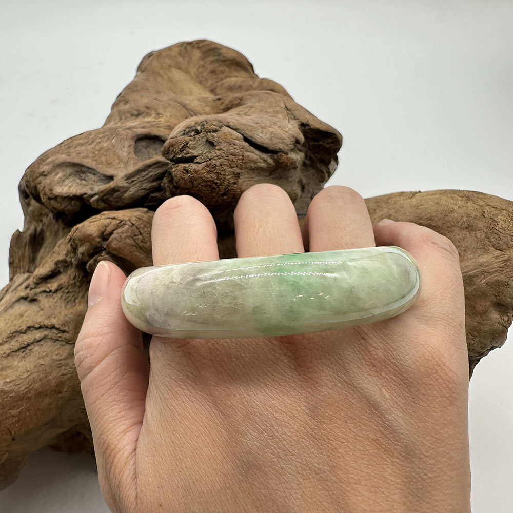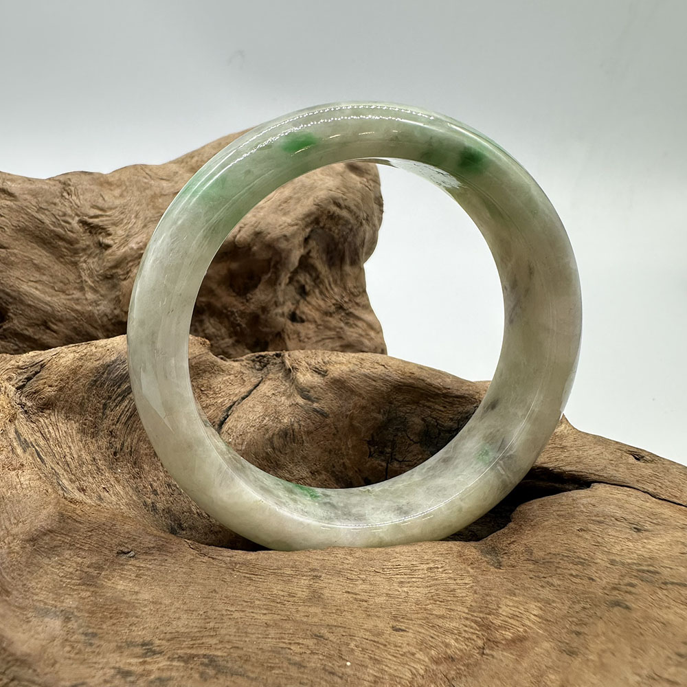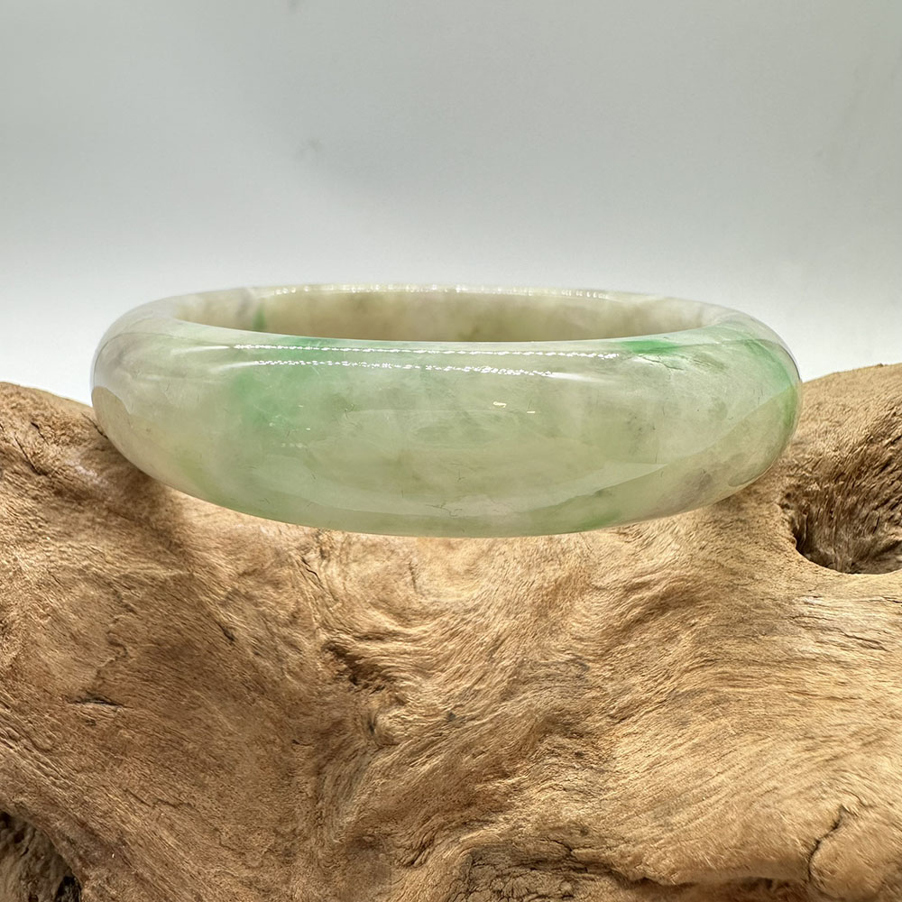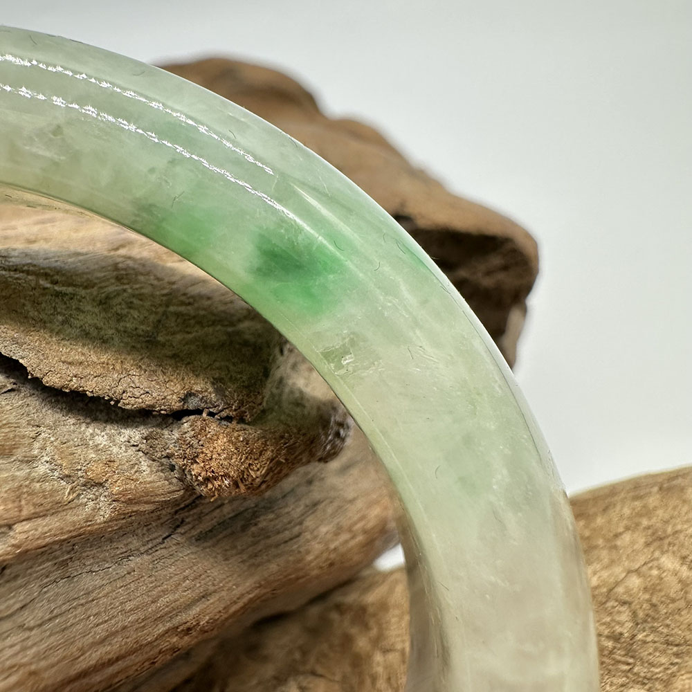 【肌容雪】天然緬甸A貨陽綠烏雞翡翠平安鐲 編號193(鐲圍59.7mm#19號)