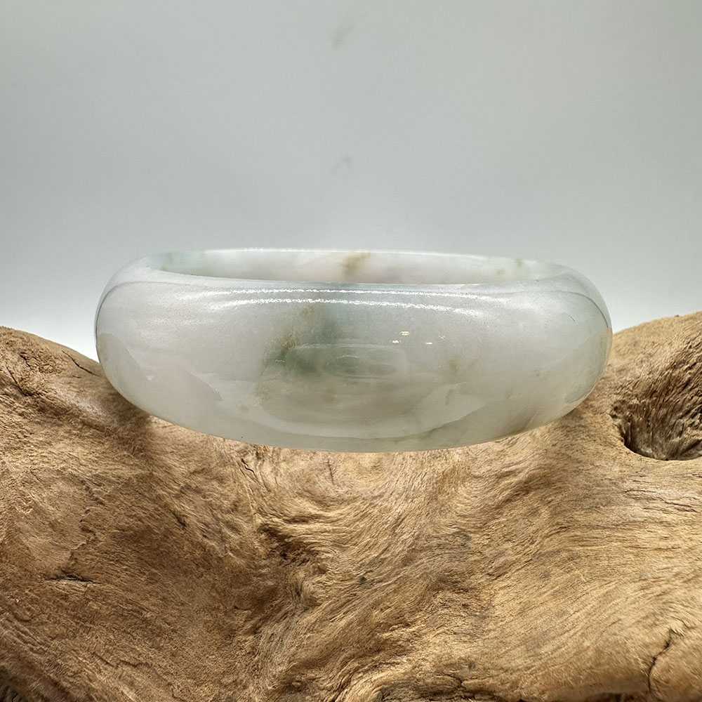 【肌容雪】天然緬甸A貨飄花灑金翡翠平安鐲 編號260(鐲圍58.0mm#18.5號)
