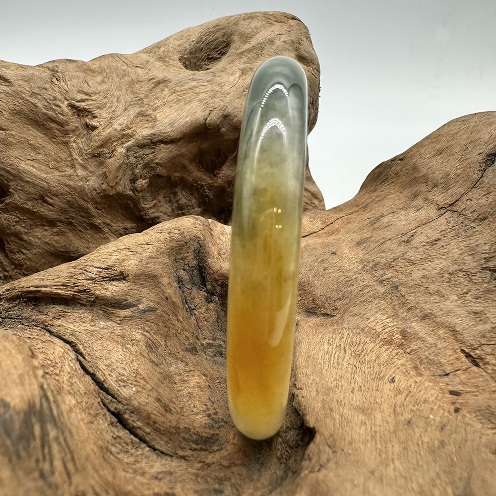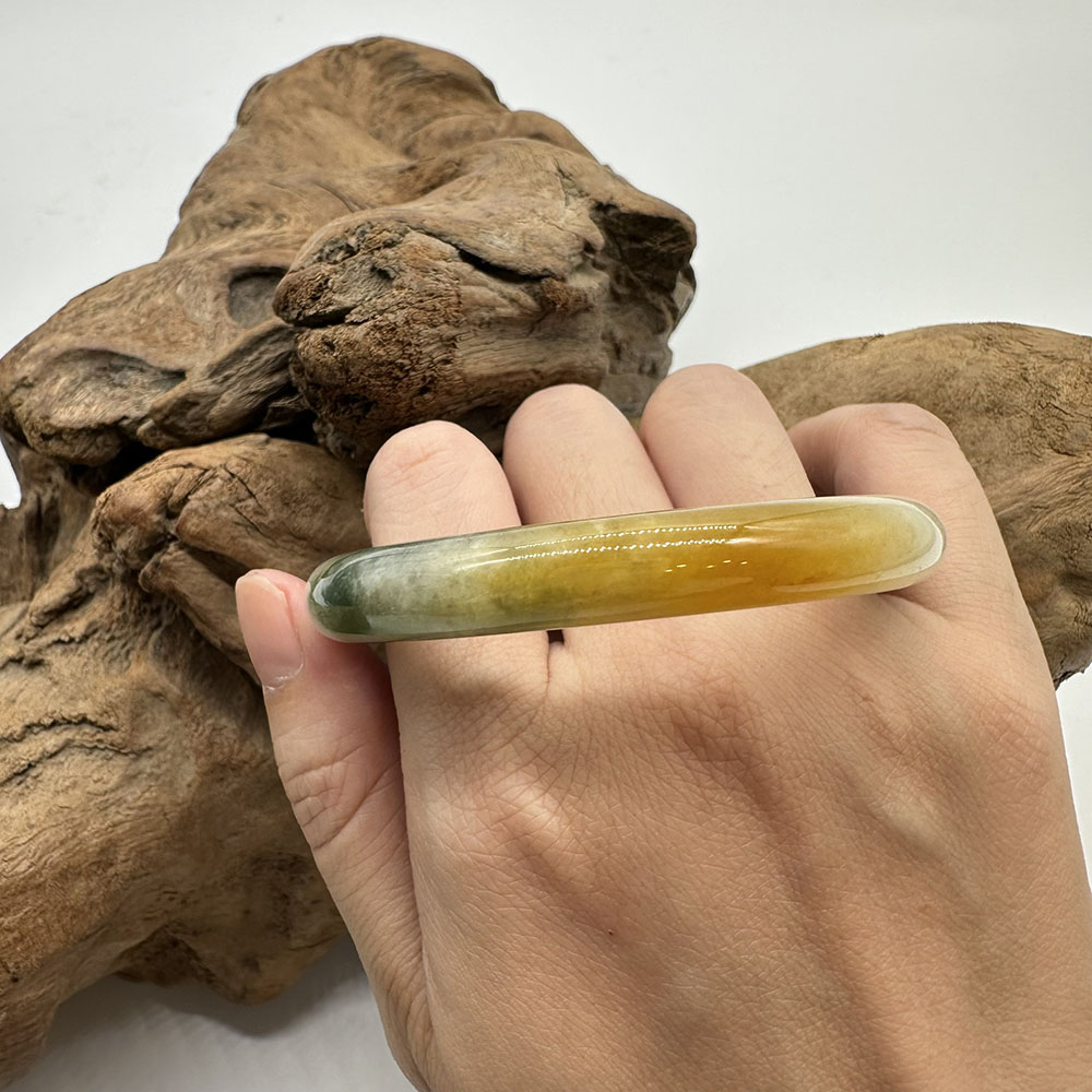 【肌容雪】天然緬甸A貨皇家綠百香果特色翡翠圓條手鐲 編號278(鐲圍53.8mm#17號)