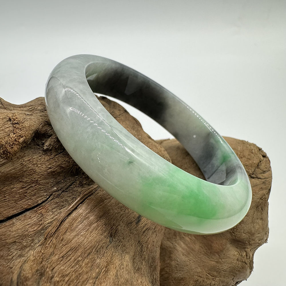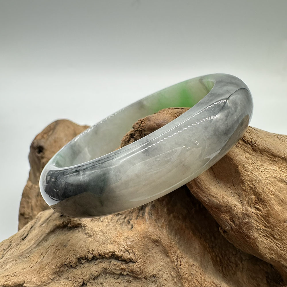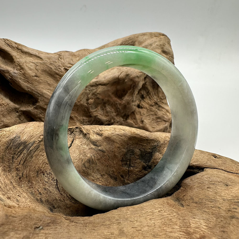【肌容雪】天然緬甸A貨冰正陽綠烏雞翡翠平安鐲 編號381(鐲圍56mm#17.5號)